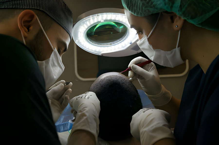 3. بعد از اتمام فرایند استخراج، پزشک متخصص بی‌حسی را روی ناحیه کاشت انجام داده و با ایجاد برش‌های ریز روی ناحیه سر، اقدام به کاشت گرافت‌ها می‌کند.